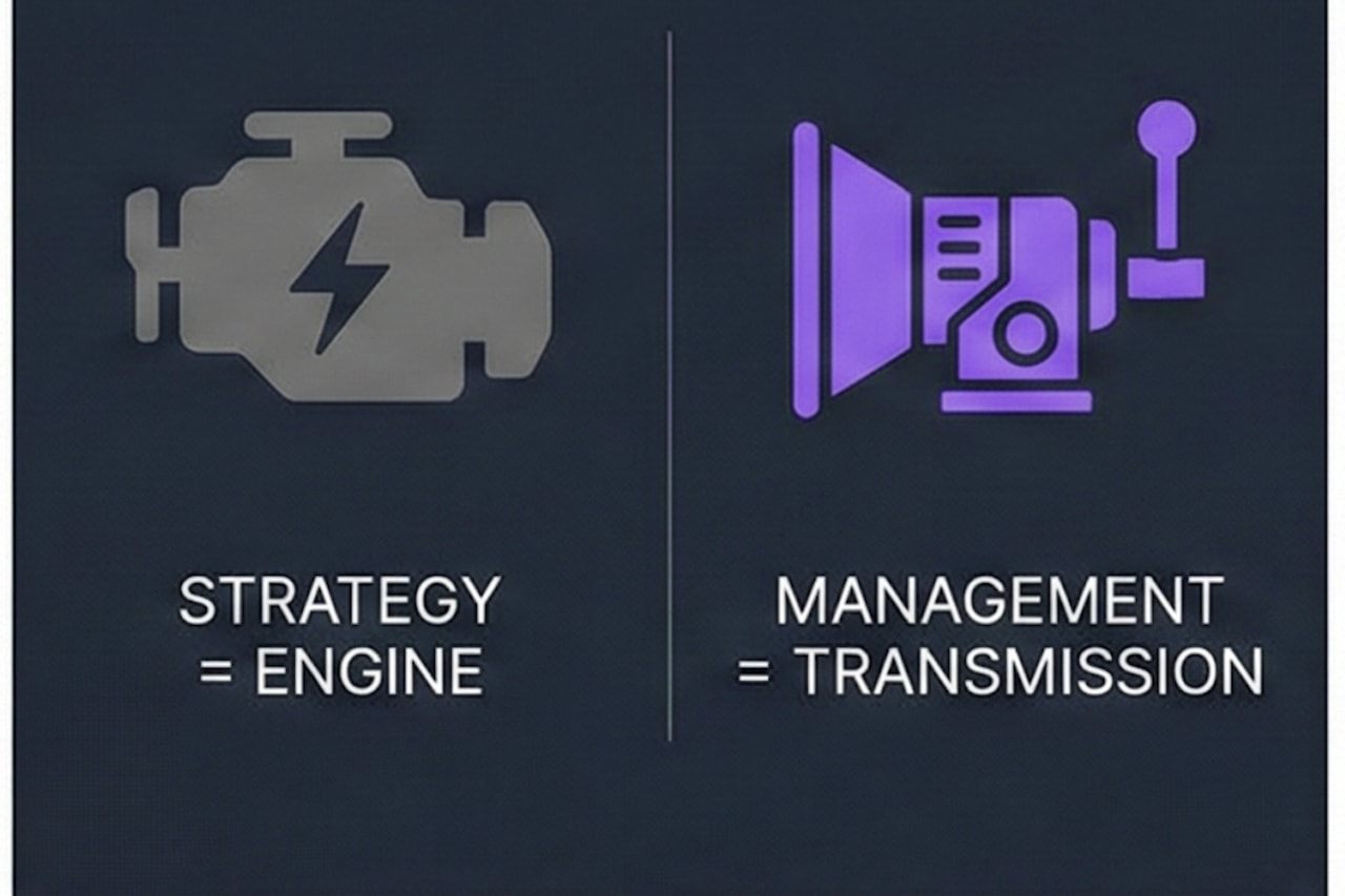 Your strategy is the engine. Management is the transmission. If execution is stalling (or burning people out), it’s probably not your “horsepower”—it’s…