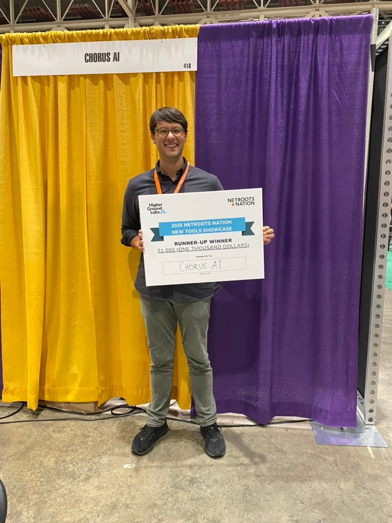Way back in August, I went to Netroots Nation in New Orleans and got to pitch Chorus AI’s Marketing Studio in the New Tools Showcase. We won our category — best new feature — and were runner up for the overall showcase.