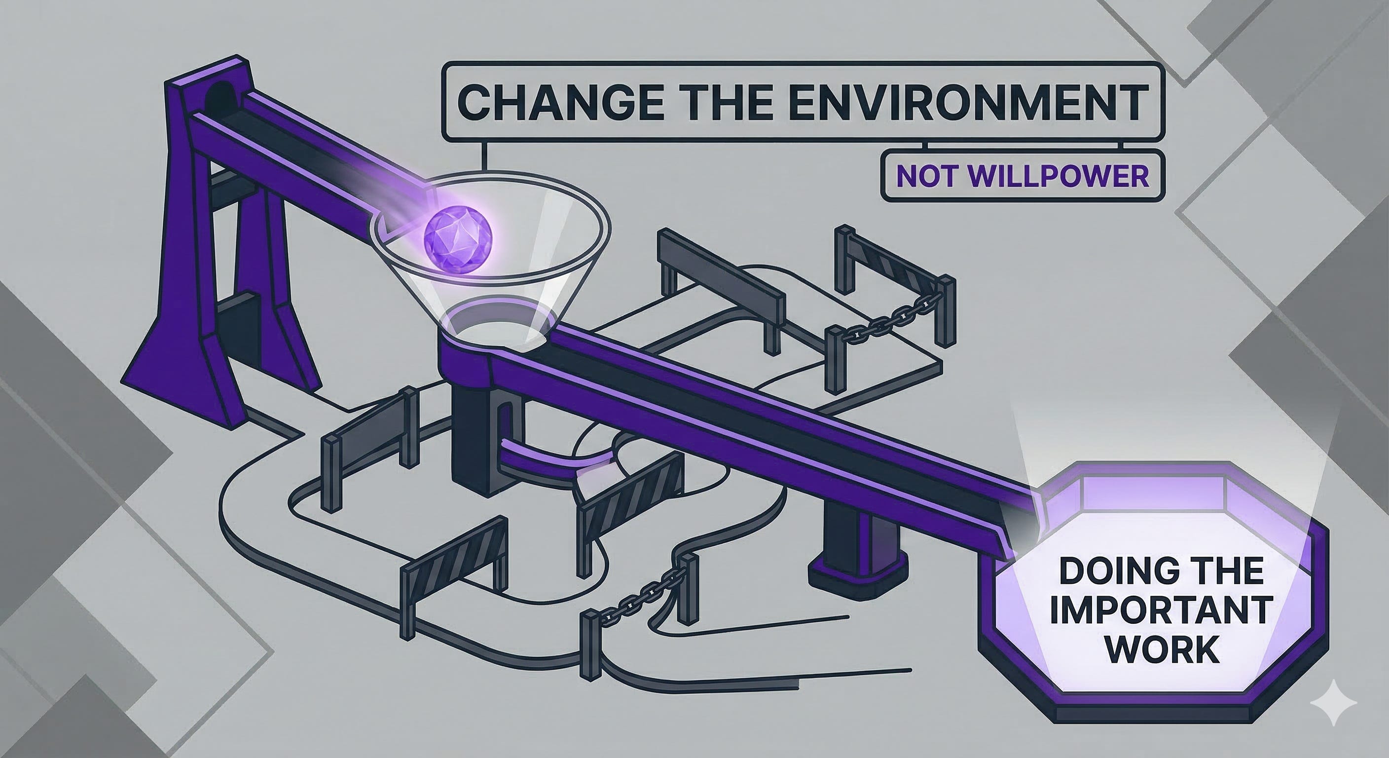 Forcing mechanisms mean a constraint that reduces reliance on willpower. It’s a setup where doing the thing you need to do becomes the path of least resistance.
