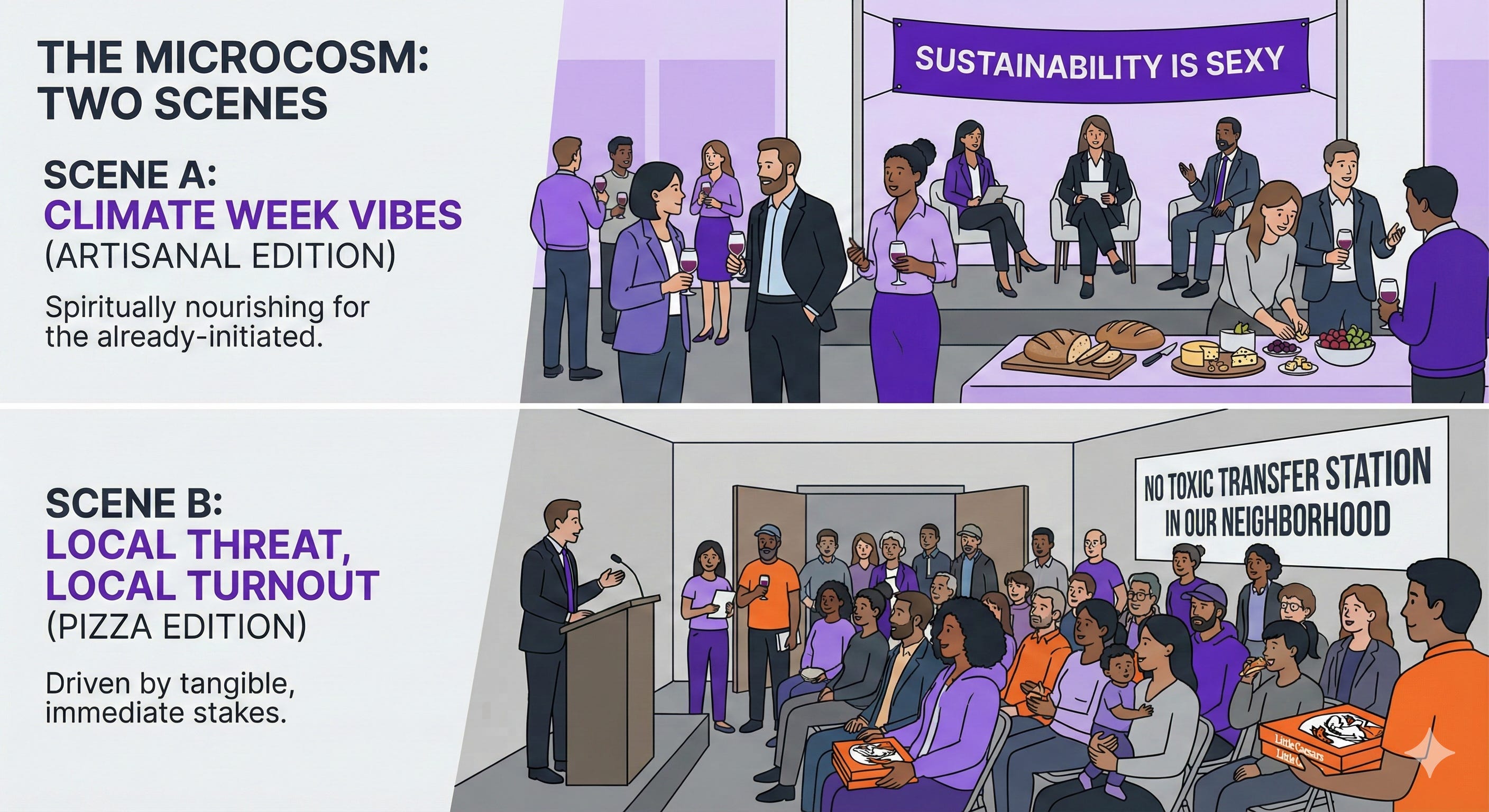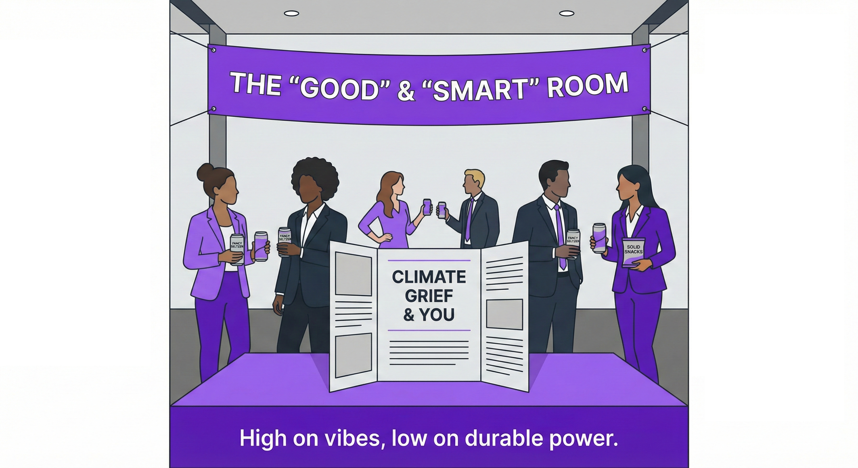 You know the scene. “Good” and “smart” people. Fancy seltzers and solid snacks. I always leave feeling sad, inspired, and a little judged by a trifold about climate grief.