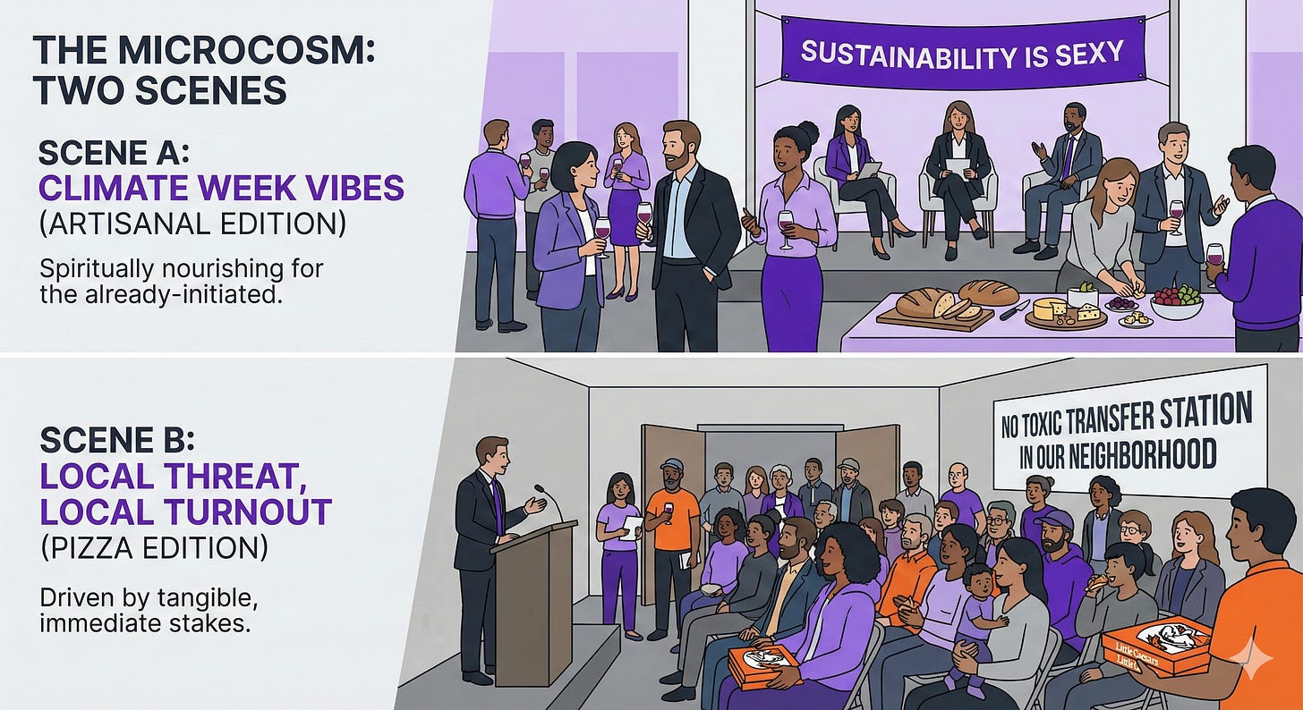It’s that mobilizing without local belonging and local stakes produces events that are spiritually nourishing for the already-initiated and politically irrelevant to everyone else.