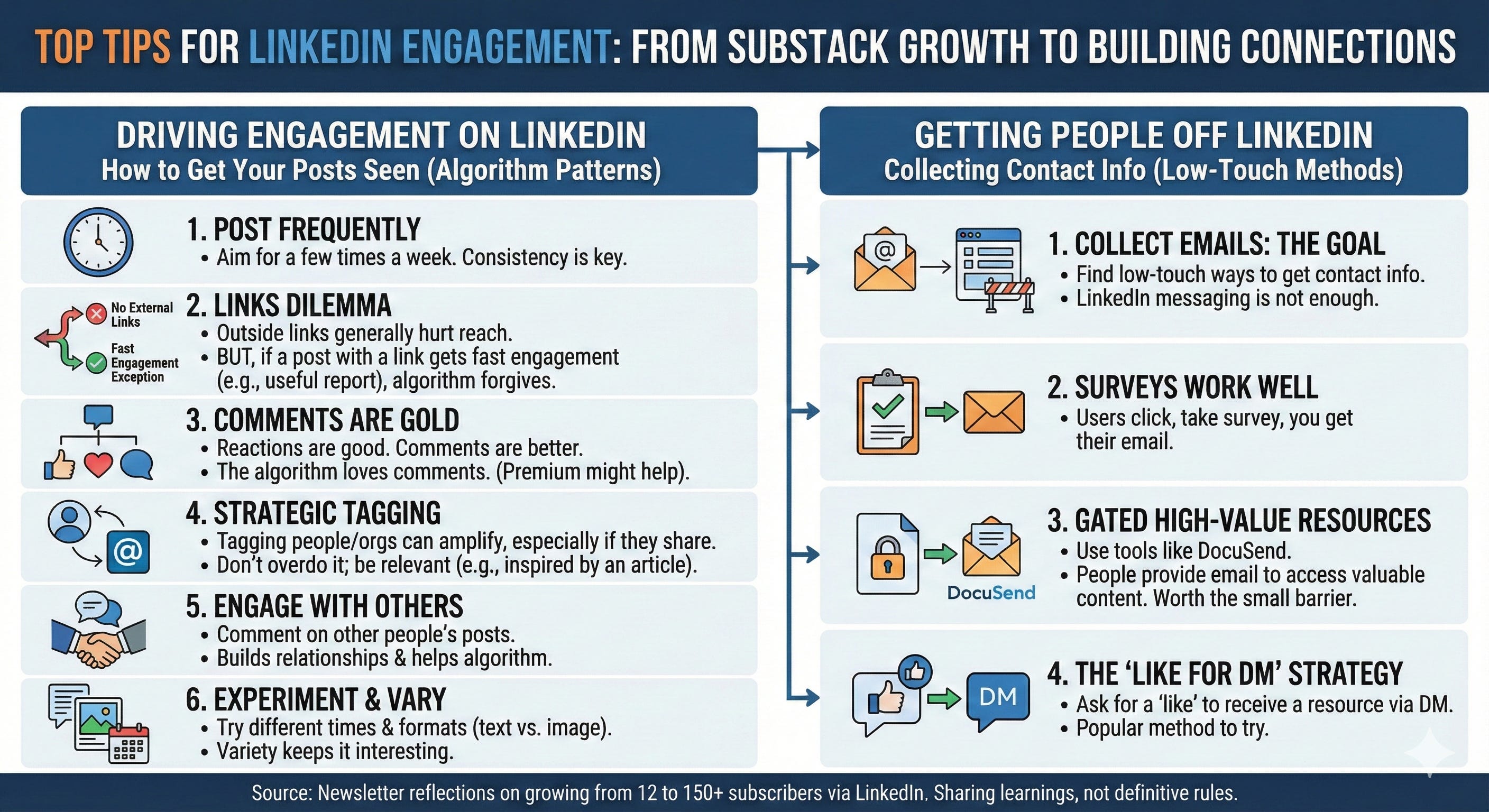 First, it’s where I’ve built most of the subscription roster for this newsletter. Second, it’s great for research. When I need to figure out who to talk to at a particular organization, LinkedIn usually gets me there. And third, it helps me maintain relationships. A few people have reached out to say thanks for commenting on their post or sharing something they wrote. Those small interactions matter more than I expected.